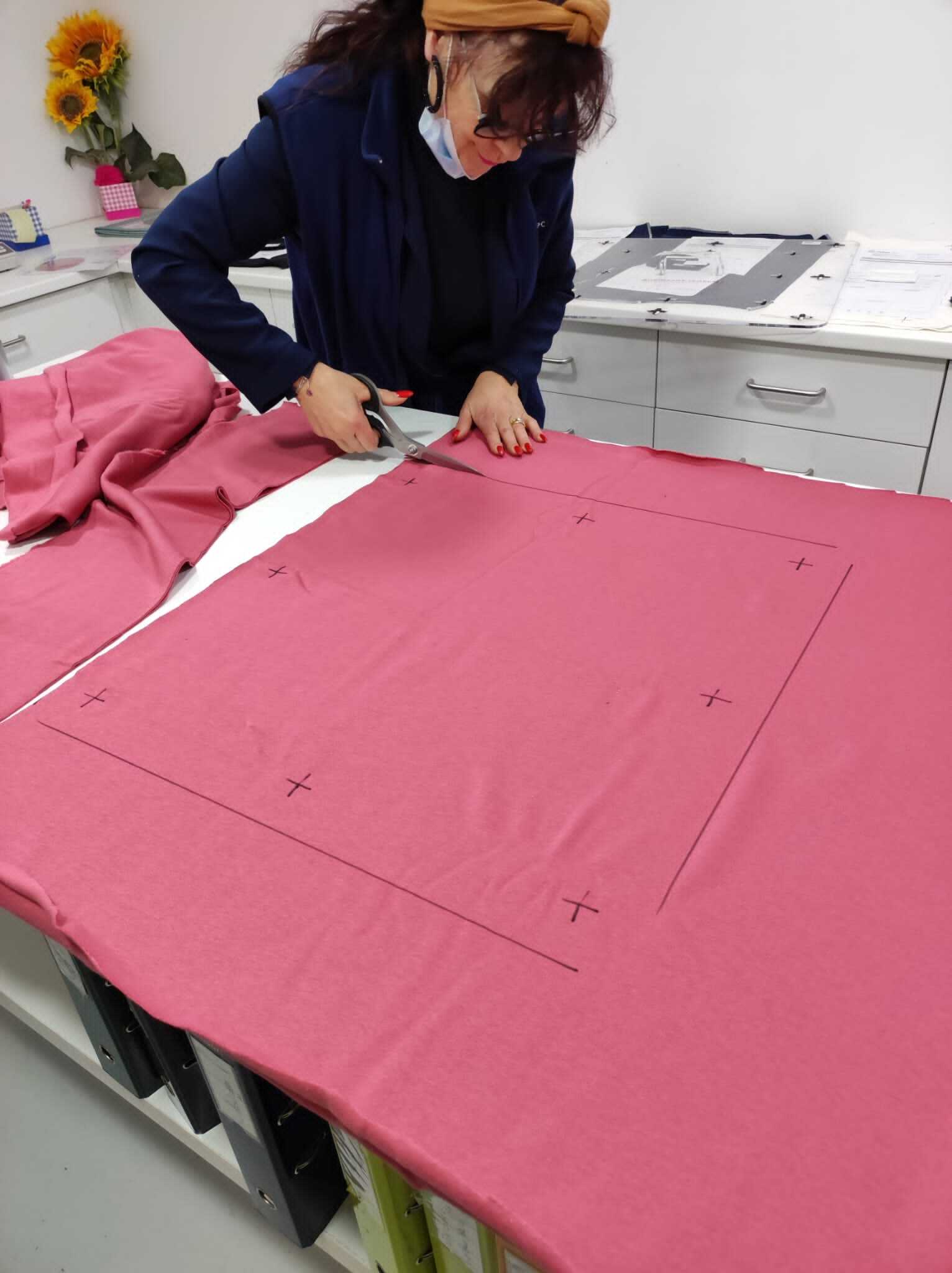 5. Découpe du jersey : Le jersey est ensuite découpé en fonction du patron, en prenant soin de respecter les orientations des fils. Cette étape est importante pour que le tee-shirt ait la bonne taille et la bonne forme, et pour minimiser les pertes. ✂️