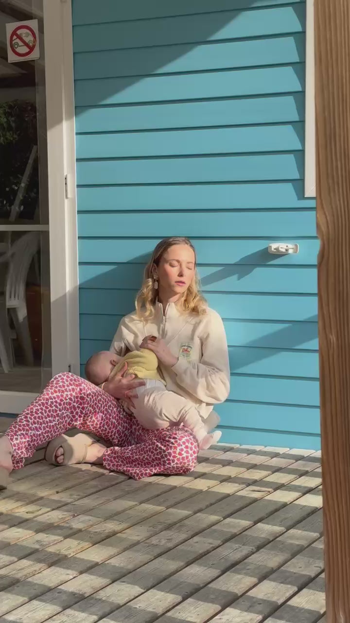 Pour ce sweat-shirt d’allaitement, le fit a été revu, un peu plus court et plus fitté.
